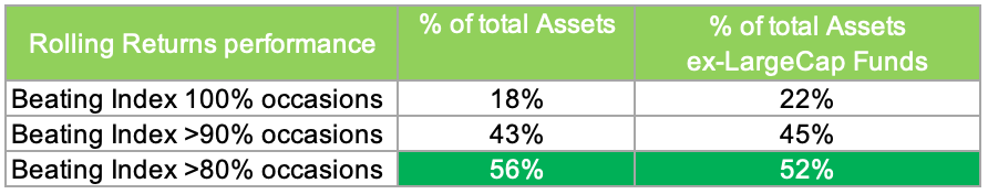 Fig: Five years rolling returns performance vs benchmark; Source: ACE MF, MoneyWorks4me research