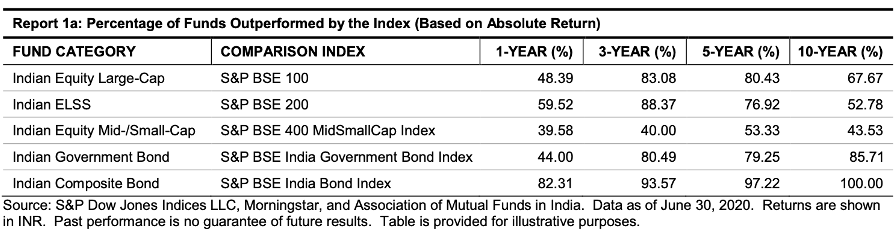 In the US, less than 20% of the funds in the Multi-cap or mid-cap category are able to beat the index returns over 10-years and 15-years.