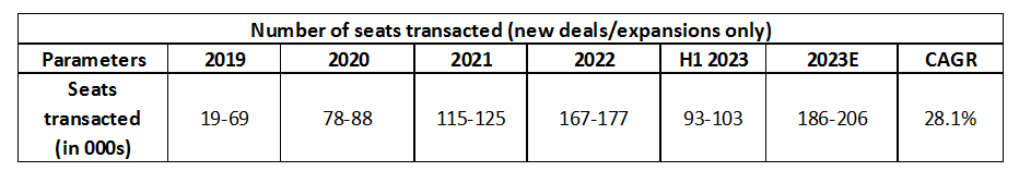 - Flexibility in area/seat requirements: Companies can easily scale up/down based on their workforce requirements.