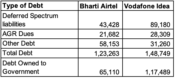 Here is the break-up of telcos’ debt with the government and banks/others. (in Rs. Crs.)