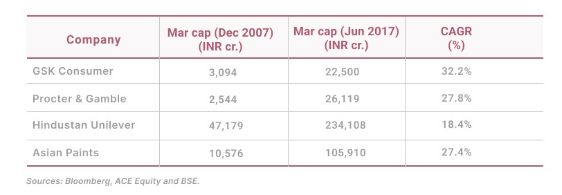 Similar to the tech boom, companies that were shunned in this bull market were available at low valuations even at the peak of the Bull Run. For example, Hindustan Unilever and Procter & Gamble were shunned by the investing community due to a lack of returns since 1999. As a result, these companies faced a strong derating in valuations which made them attractively priced. Even if an investor purchased shares of these companies at the height of the infrastructure boom, he would have made spectacular returns over the next 10 years, including the bear market that followed the Bull Run.