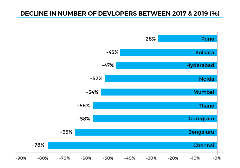 The implementation of RERA has improved quality control through standardisation of size measurements, improved transparency and increased costs for delay and quality issues. This has allowed stronger players with superior management and balance sheets to increase their presence in the market as small developers continue to face issues. The period between 2017 and 2019 witnessed a large number of these small developers exiting the real estate industry due to their inability to comply with the new norms.