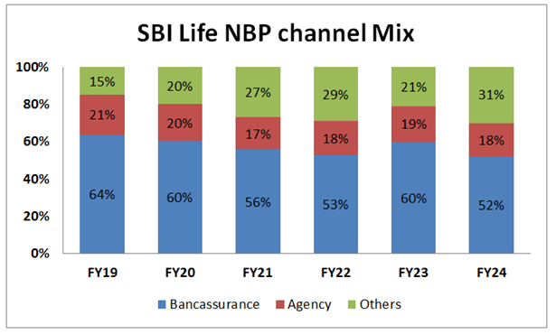 Here is a snapshot of SBI Life’s New Business Premium (NBP) Channel mix.