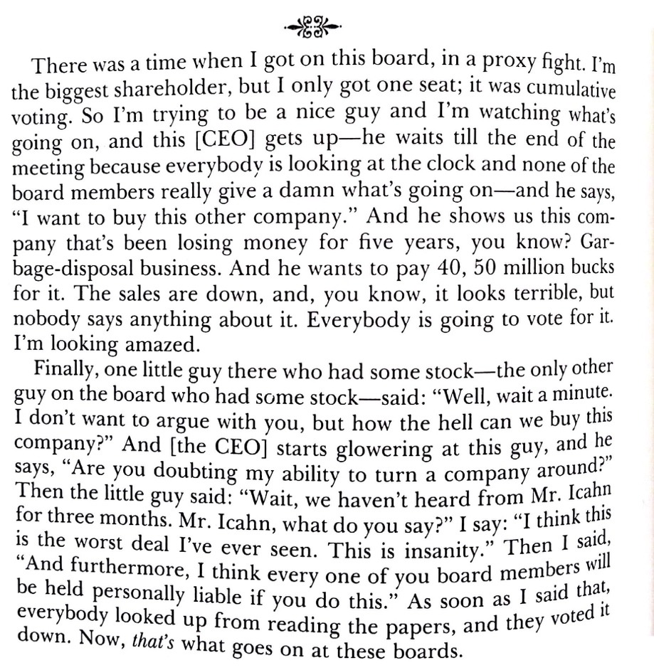The following excerpt highlights the problem of ineffective governance at the board level.