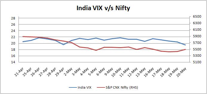 The India VIX was down by 4.70% at 19.45 on Friday as compared to its previous close of 20.41 on Thursday.