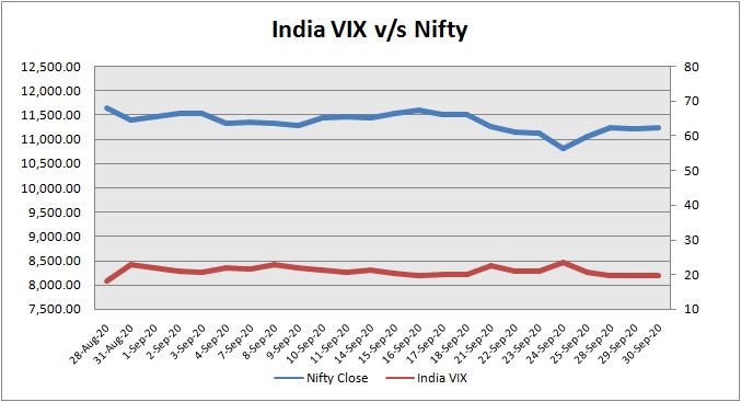 India Volatility Index (VIX), a gauge for market’s short term expectation of volatility decreased by 0.42% and reached 19.69. The 50 share Nifty up by 25.15 points or 0.22% to settle at 11,247.55.