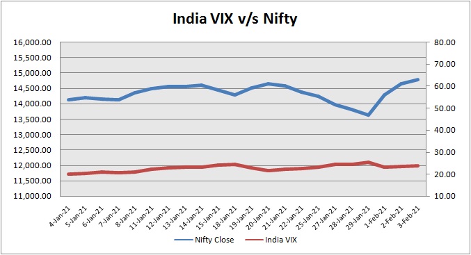 India Volatility Index (VIX), a gauge for market’s short term expectation of volatility increased by 1.71% and reached 23.75. The 50 share Nifty up by 142.10 points or 0.97% to settle at 14,789.95.