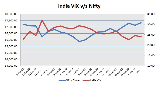 Nifty resumes northward journey on Tuesday and finished the session with the gains of over a percent amid positive global cues. Globally investors took support after US Federal Reserve Chairman Jerome Powell said that the central bank will, if required, move ‘more aggressively’ to raise federal funds rate by more than 25 basis points at its policy meetings in an effort to curb inflation. Market made cautious start, as rating agency Fitch in its Global economic Outlook-March 2022 has slashed India's growth forecast for the next fiscal to 8.5 per cent from 10.3 per cent. The agency slashed India's growth forecast on account of sharply higher energy prices. Further, market extended its losses, as Reserve Bank of India (RBI) Governor Shaktikanta Das said that all COVID-related liquidity relief measures extended by the central bank have come with a sunset date and would be withdrawn in due course. However, in afternoon session, index recovered from losses to trade higher with Reserve Bank Governor Shaktikanta Das’ statement that the RBI will continue to ensure adequate liquidity to support the economy, which is facing many headwinds in the form of soaring crude oil and key commodity prices following the Russian invasion of Ukraine. Finally, Nifty closed the session above 17300 mark.