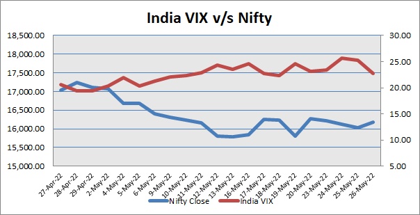 India Volatility Index (VIX), a gauge for market’s short-term expectation of volatility decreased by 10.14% and reached 22.72. The 50 share Nifty up by 144.35 points or 0.90% to settle at 16,170.15.