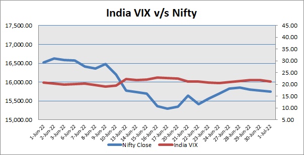 S&P CNX – Nifty ended last trading day of week marginally lower. India VIX was down by 2.70%. Market made negative start, as traders were cautious with the latest public debt management report showing that the government’s total liabilities rose 3.74 per cent to Rs 133.22 lakh crore in the March quarter from Rs 128.41 lakh crore in the three months ended December 2021. Besides, Reserve Bank said India's external debt increased by $47.1 billion to $620.7 billion in the financial year ended March 2022. Further, index extended its southward journey, as government slapped Rs 6 per litre tax on exports of petrol and ATF and Rs 13 per litre on exports of diesel. The government also slapped Rs 23,230 per tonne additional tax on domestically produced crude oil to take away windfall gains accruing to producers from high international oil prices.