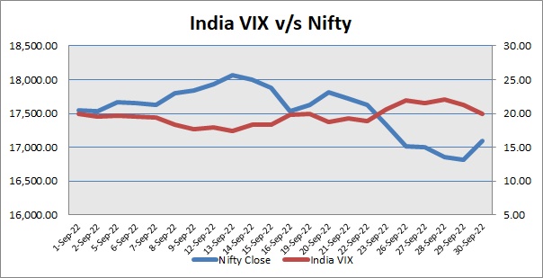 S&P CNX -- Nifty -- snapped 7- day losing streak on Friday and ended day’s trade above 17000 mark. India VIX was down by 6.26%. Market made negative start, as RBI said India’s current account deficit (CAD) in April-June was at $23.9 billion, or 2.8 per cent of gross domestic product (GDP), much higher than the $13.4 billion, or 1.5 per cent of GDP, in January-March 2022. However, soon market erased all its losses to trade above neutral line after S&P Global Ratings said rising rates and increased European energy insecurity are hitting growth in almost every country, but India with an estimated 7.3 per cent growth this fiscal, would be the star among emerging market economies. In afternoon trade, Market extended its gains to trade at day’s high point, as Reserve Bank of India (RBI) raised the benchmark lending rate by 50 basis points to 5.90 percent in a bid to check inflation, which has remained above its tolerance level for the past 8 months. This is the fourth consecutive rate hike after a 40 basis points increase in May and a 50 basis point hike each in June and August. Finally, Nifty closed the last trading day of week with gains of above one and half a percent.