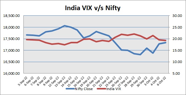 India Volatility Index (VIX), a gauge for market’s short-term expectation of volatility decreased by 1.30% and reached 19.32. The 50 share Nifty up by 57.50 points or 0.33% to settle at 17,331.80.