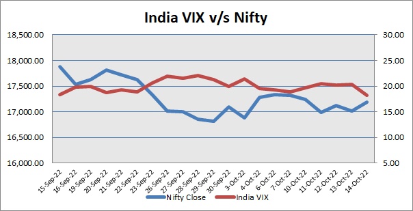 S&P CNX Nifty ended last trading day of week with hefty gains amid positive global cues. India VIX was down by 10.01%. Market made a positive start after Union Finance Minister Nirmala Sitharaman said that India is setting the global benchmarks on the digital front and that there is a sense of confidence in the country that it will be able to face geopolitical and economic uncertainties and still perform. Traders paid no heed towards reports that US consumer prices advanced to a 40-year high in September, pressuring the Federal Reserve to raise interest rates even more aggressively to stamp out persistent inflation before it becomes entrenched. Further, index extended its gains to trade higher with report that S&P Global Ratings said growth in large Asia Pacific economies like China, India and Indonesia will be less affected as their economies are more domestically oriented.