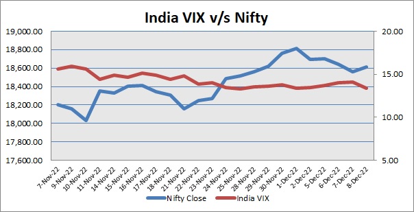 Nifty December 2022 futures closed at 18724.95 (LTP) on Thursday, at a premium of 115.60 points over spot closing of 18609.35, while Nifty January 2023 futures ended at 18831.85(LTP), at a premium of 222.50 points over spot closing. Nifty December futures saw a contraction of 1,789 units, taking the total open interest (Contracts) to 2,21,083 units. The near month derivatives contract will expire on December 29, 2022. (Provisional)