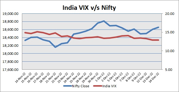India Volatility Index (VIX), a gauge for market’s short-term expectation of volatility increased by 0.01% and reached 12.89. The 50 share Nifty up by 52.30 points or 0.28% to settle at 18,660.30.