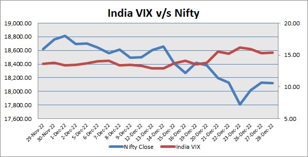 India Volatility Index (VIX), a gauge for market’s short-term expectation of volatility increased by 0.68% and reached 15.40. The 50 share Nifty down by 9.80 points or 0.054% to settle at 18,122.50.
