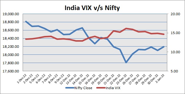 Indian equity benchmark -- Nifty -- ended in positive terrain on first trading day of 2023 and settled near 18200 mark. Market made a cautious start, as traders got worried, after the Centre for Monitoring Indian Economy (CMIE) in its latest data report showed that India's unemployment rate rose to 8.30% in December 2022, the highest in 16 months, from 8.00% in the previous month. But soon, index added gains as market participants got support with Finance Ministry’s statement that gross GST revenue receipts in December 2022 totaled nearly Rs 1.5 lakh crore, up 15% year-on-year. It mentioned monthly GST revenues more than Rs 1.4 lakh crore for 10 straight months in a row.  Traders also got some support with the data showing that the output of eight core industries increased by 5.4 per cent in November 2022 as against a 3.2 per cent growth in the same month last year on a better show by coal, fertiliser, steel, cement and electricity segments.