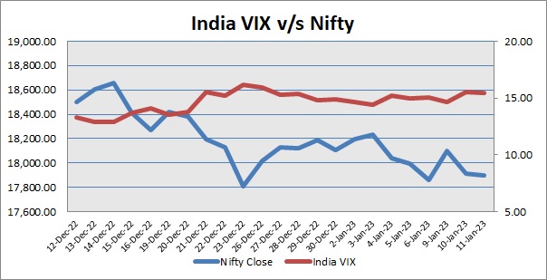 Nifty January 2023 futures closed at 17960.00 (LTP) on Wednesday, at a premium of 64.30 points over spot closing of 17895.70, while Nifty February 2023 futures ended at 18027.00 (LTP), at a premium of 131.30 points over spot closing. Nifty January futures saw a contraction of 832 units, taking the total open interest (Contracts) to 2,31,975 units. The near month derivatives contract will expire on January 25, 2023. (Provisional)