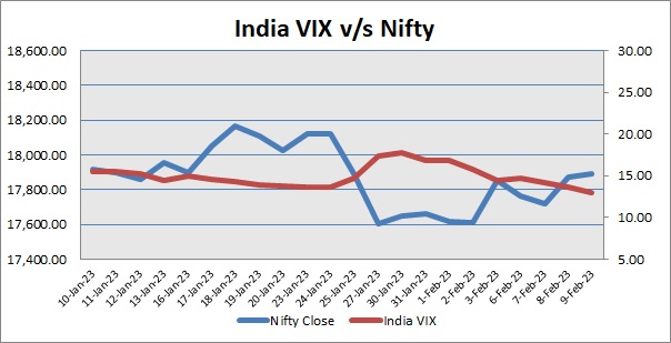 Nifty February 2023 futures closed at 17959.10 (LTP) on Thursday, at a premium of 65.65 points over spot closing of 17893.45, while Nifty March 2023 futures ended at 18060.00 (LTP), at a premium of 166.55 points over spot closing.  Nifty February futures saw an addition of 1,272 units, taking the total open interest (Contracts) to 2,03,191 units. The near month derivatives contract will expire on February 23, 2023. (Provisional)