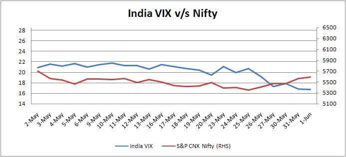 The India VIX lost 0.53% at 16.73 on Wednesday as compared to its previous close of 16.82 on Tuesday.