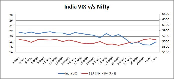 On the global front, the US markets plummeted overnight on getting weak economic data and all the major indices were down by over two percent for the day.  Most of the Asian equity indices finished the day’s trade in the negative terrain on Thursday as investors remained concerned about the global economic outlook. Moreover, all the European counterparts were trading in the negative terrain at this point of time. Back home, on the sectoral front, all the indices on NSE were hammered, Bank Nifty remained the major laggard, losing 1.76% followed by CNX Realty down 1.54%, CNX Infra 0.76% and CNX IT by 0.47%. The India Volatility Index (VIX), a gauge for market’s short term expectation of volatility, surged 7.47% and reached 17.98, while S&P Nifty closed at 5,550.35 losing 40.65 points or 0.74%.