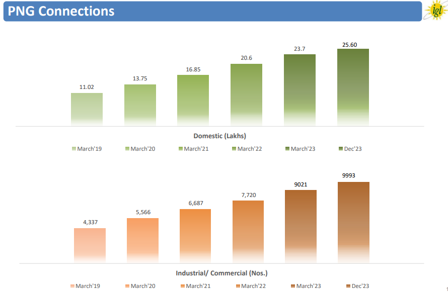 Since March 2019 IGL has expanded its PNG connection network significantly, growing from approximately 11 lakh to around 26 lakh domestic connections and from 4,337 to 9,993 industrial/commercial connections.