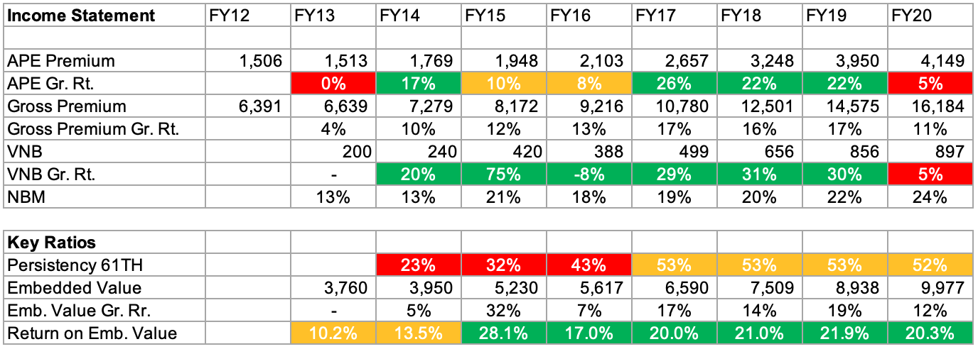 Financial track record gives insight into the company's performance on key parameters over the past ten years. MoneyWorks4me’s proprietary colour codes make it easy for retail investors to gauge the company’s past performance.