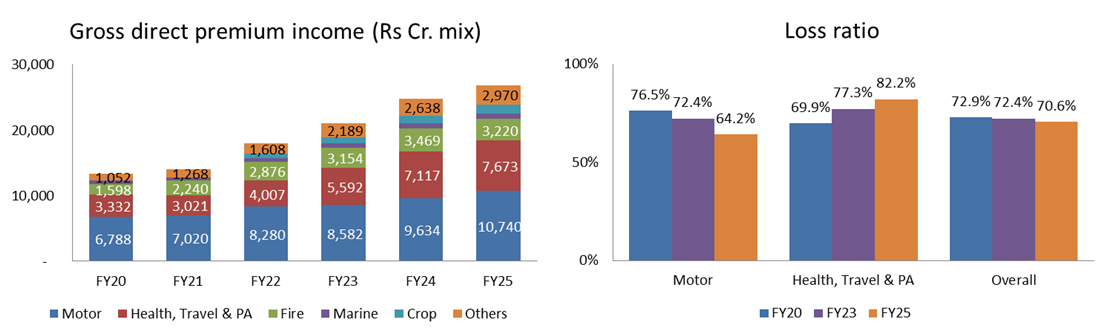 ICICI Lombard General Insurance Company Ltd has performed well in majority of the past ten years indicating its past ten year financial track record is very good