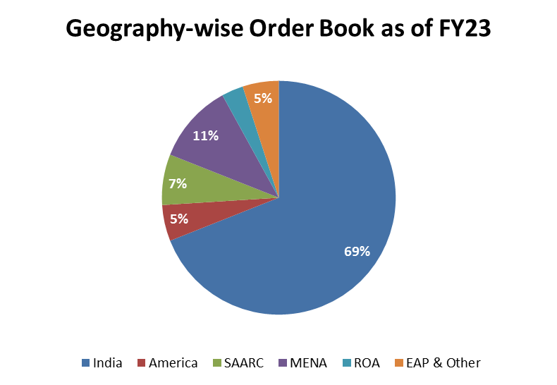 Civil business: The company’s Civil business focuses on the construction of factories, warehouses, residential buildings, railway stations, metros, and sewage & water treatment plants, and comprises of four verticals - A. Infrastructure & Heavy Civil (Metro & Water Projects), B. Industrial & Hydrocarbon (Factories), C. Residential & Public Spaces (Buildings, Commercial Spaces), D. Defence (Civil projects in Defence sector). It provides professional EPC services in an area dominated either by small unorganised players or by very few large companies.