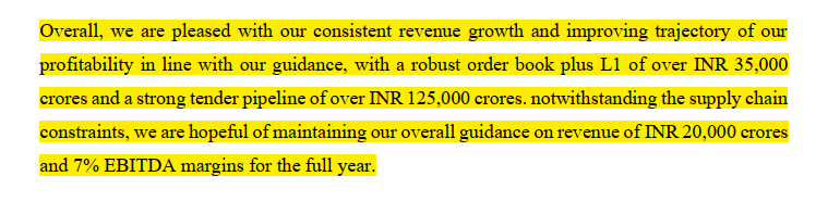 Railways: The company is an integrated player in the Railway EPC industry, providing complete turnkey solutions for all types of railway contracts. The company has integrated backwards to manufacture contact & catenary conductors, signalling cables as well as galvanised steel structures for railways.
