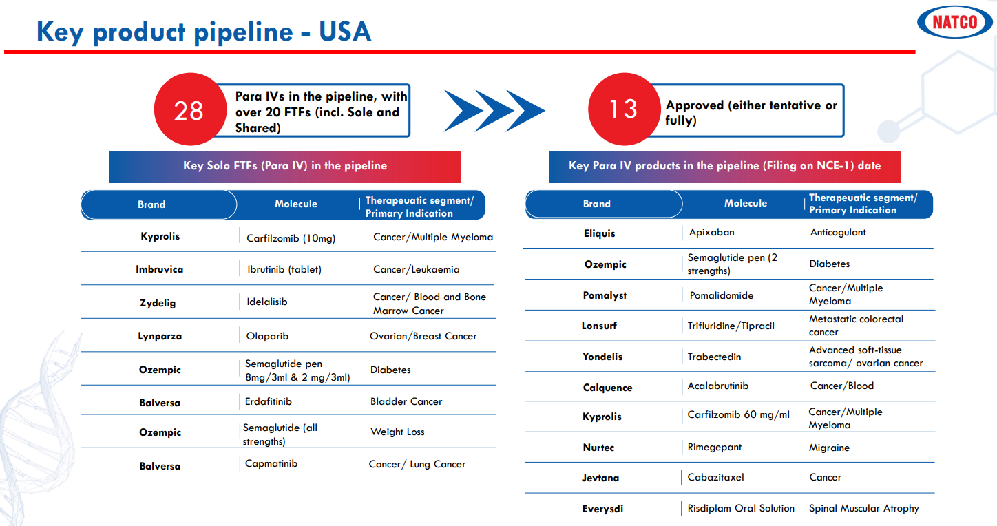 • 2018: USFDA completed inspection of Natco’s Mekaguda API facility with zero observations.