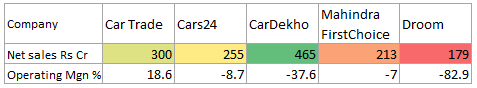 CarDekho, Mahindra First Choice, Cars24, Droom are peers of CarTrade Tech Limited
