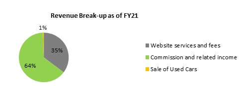 The company generates revenue from Commission and fees from auction and remarketing services of used vehicles, Online advertising solutions on their website, Lead generation for OEMs, dealers, banks and other financial institutions, Technology-based services to OEMs, dealers, banks and other financial institutions, Inspection and valuation services for banks and other financial institutions. The company is the only profitable player among its competitors.