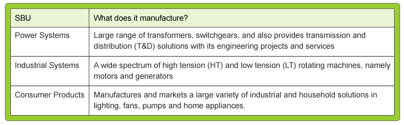 As you have read above, the company operates in 3 SBU’s – Power, Industrial and Consumer Durables. Two significant advantages that the company gains by these multiple business segments are: