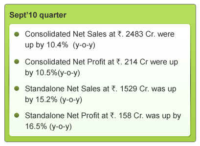 On the back of strong domestic market the consolidated segment revenue of consumer products was higher by 24%. The power systems business of the company which was affected by delivery related issues in the first quarter ended June 2010 is back on track with both standalone as well as overseas entities registering steady single digit growth. Also, the company’s overseas subsidiaries which were posing a problem till some time back have started registering positive growth. The company has faced pricing pressure in the last year (Realization for transformers fell by 11%). This pressure due to competition may affect margins but the company has maintained stable margins and expects the same to continue in the coming quarters