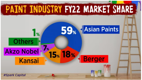 The Indian paint industry is already quite organized (>70% share), with a few big players like Asian Paints, Berger Paints, and Kansai dominating the scene. The Indian paint industry is split between decorative paints (Asian paints and Berger paints) and industrial paints (Kansai Nerolac). Decorative paint is a high-margin business as compared to that of industrial paints. Many new players are entering this market.