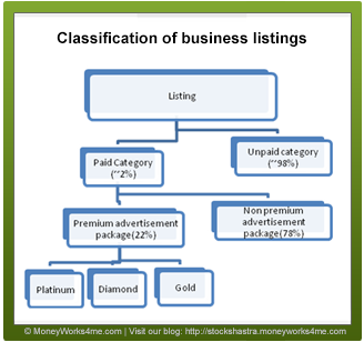 It started with voice based search services and later ventured into internet, mobile-internet and SMS-based services. Annual and long-term membership are provided to its paid advertisers, who can opt for premium or non – premium advertisement packages on advance payment on a monthly or annual basis. Premium advertisement packages including platinum, diamond and gold membership packages allow preferential listing of these advertisers ahead of non – premium and free listing. The company has no listed peers for comparison; however it faces competition from Askme, Asklaila, Getit and Sulekha.