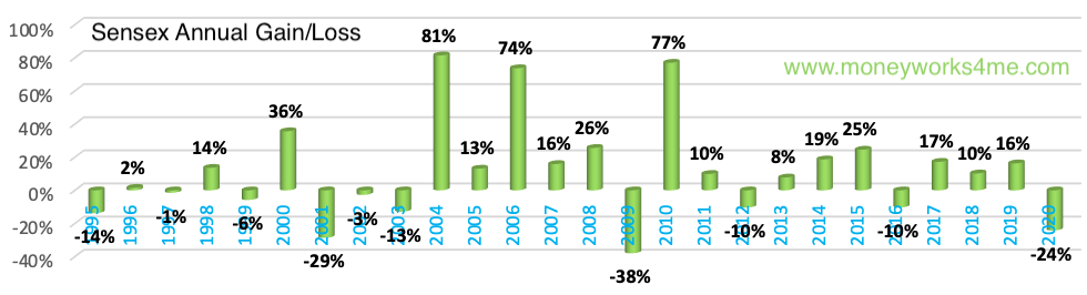 Equity return often come in unpredictable manner and they can be very steep on either side. But they trend upwards as India’s economy keeps growing.
