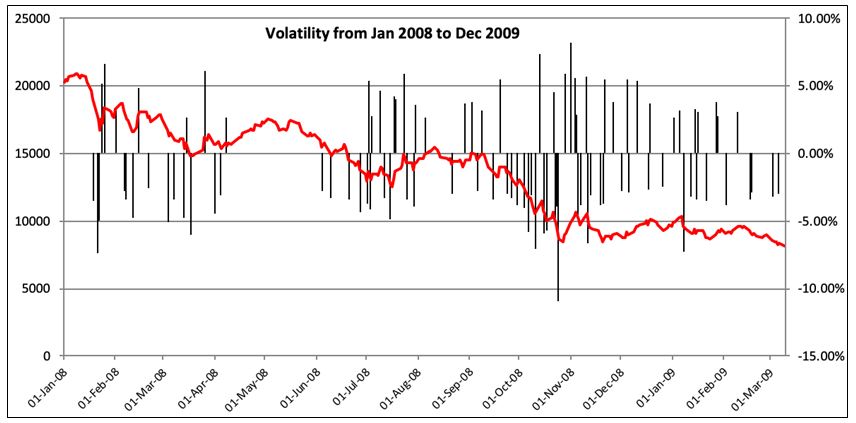 Whenever VIX is high, derived from market price estimates, the market volatility is the highest. To put it simply, usually whenever there is high uncertainty, markets tends to have wide price estimates. This leads to large moves in prices.