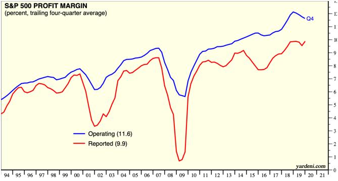 Although the P/E ratio doesn’t look very steep, CAPE P/E ratio looks high as current profit margins are lifetime high. CAPE P/E normalizes the cyclical component of the market. Based on an average profit margin, the S&P 500 appears to be at elevated valuation.