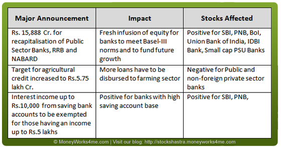 The budget was largely positive for the banking sector. Though no major announcements were made, the FM’s target to reduce fiscal deficit will indirectly benefit the sector as it will lead to reduced inflation which in turn will lead to a reduction in policy rates. It will also mean higher income from securities held by banks as yield on bonds will decrease.