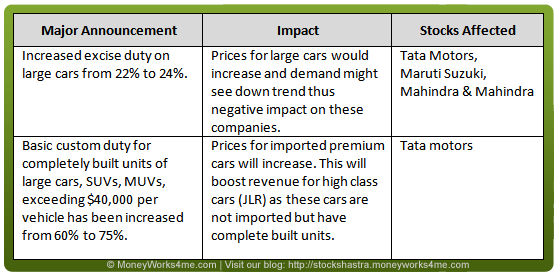 The budget had a marginally negative impact on automobile industry, with prices of large and premium cars set to increase.
